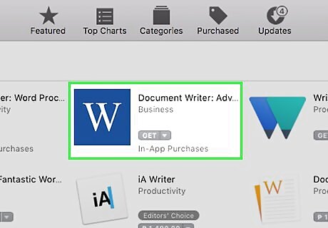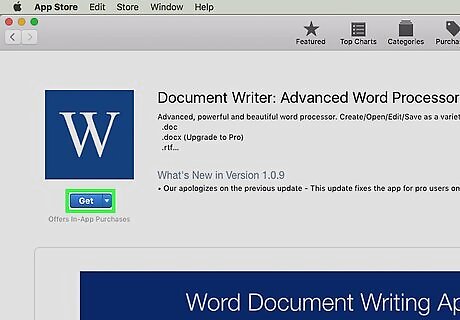Search for a program. In the text box that's in the upper-right corner of the App Store window, type in the name of the app or program you want to install and then press ⏎ Return. If you don't know the specific name of a program, you can browse the home page, or you can type in a general phrase (e.g., "word processor").