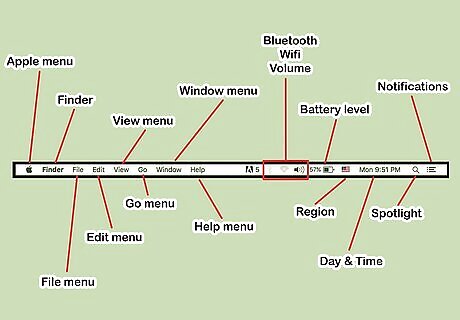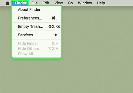 Use the menu bar to see program-specific options. If you open a program (e.g., Finder), you'll see the program's name in the menu bar. Clicking this menu item will prompt a drop-down menu with various options for the program in question. For example, if you have Finder open, you can click the Finder menu item in the upper-left side of the screen to see Finder-specific options.