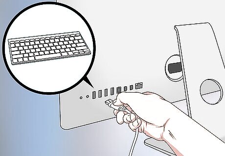 Attach the keyboard to the iMac. You'll use the included Lightning to USB cable to do so: plug the smaller Lightning end of the cable into your keyboard's USB-C port, then plug the other end of the cable into one of the rectangular USB ports on the back of your iMac. This cable is used to charge your keyboard and your Magic Mouse, but you can use it initially to ensure that your keyboard will work properly.