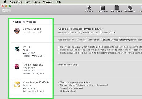 Review the available apps. Once a list of the apps which need updates appears at the top of the page, you can look through the apps to determine which ones you want to update. If an operating system update is available, you'll usually see it at the top of the App Store window.