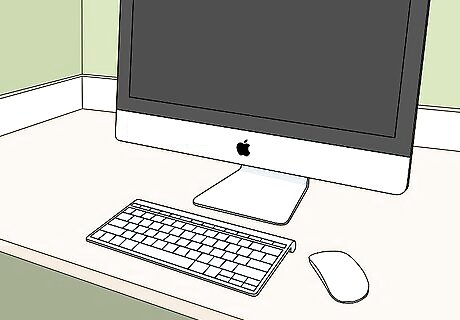 Place your keyboard and mouse in front of the iMac. Both the keyboard and the mouse that come included with your iMac are already paired with the computer, so just position them a comfortable distance from the monitor.