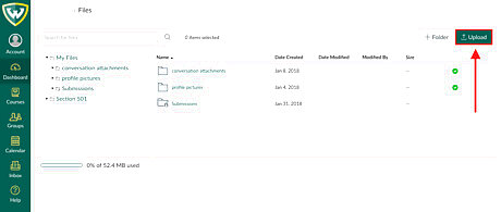 Manage your files. Canvas includes an area where you are able to upload your files that allow you to access them on any device as long as you are logged into Canvas. Click on the "Account" icon on the left side of the navigation bar and click on "Files". Click on the "Upload" icon in the top right corner and upload your files from your computer. Click the "Folder" icon next to the Upload icon to place your files into specific folders.