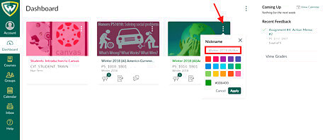 Customize your courses. Canvas allows users to rename and color code their courses in order to help them identify the different classes. From the dashboard, click on the "Options" menu, which is indicated by three vertical dots. Rename your courses and choose a certain color that will help you distinguish it from your other classes. Click "Apply" once you are complete.