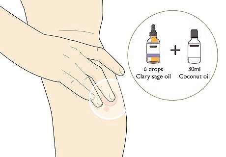 Use clary sage to prevent staph infections. If you get a minor cut by a dirty blunt object, clary sage has been proven to help stave off multiple strains of Staphylococcus (including S. aureus, S. epidermidis, and S. xylosus). Stir 6 drops of clary sage oil into 1 fluid ounce (30 mL) of coconut oil and apply it to the affected area. Clary sage oil also encourages wounds, bruises, and burns to heal faster. Only apply clary sage to the wound after you’ve cleaned it. Don’t use it on deep puncture wounds. Make sure that you always wash your hands before and after caring for a wound as well.Warning: See a doctor for treatment if your wound does not heal or if you notice signs of an infection, such as redness, swelling, pus, or fever.