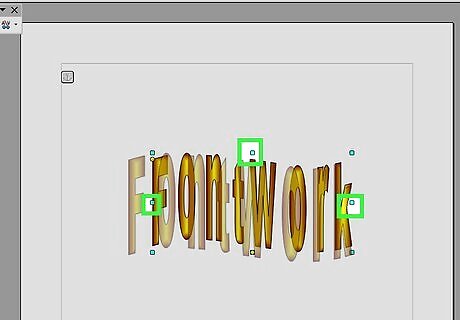 Move or resize the Fontwork. When you select a Fontwork object, eight blue squares (known as handles) appear around the edge of the object. You can drag these handles to resize the object. A yellow dot also appears on the object. This dot may be along an edge of the object, or it may be somewhere else. If you hover the pointer over this yellow dot, the pointer turns into a hand symbol. You can drag the dot in different directions to distort the object.