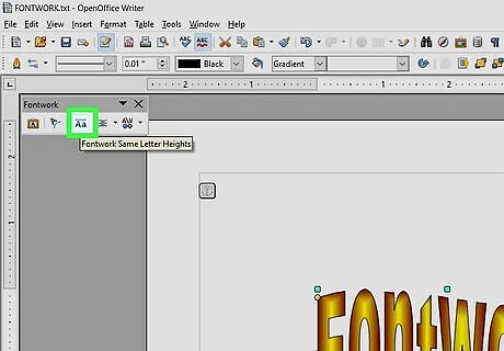 Edit the Fontwork Same Letter Heights. This icon looks like "Aa" with a line on top of the two letters and it changes the height of characters in the object. It toggles between normal height (where some characters are taller than others, for example, capital letters D, H, and L are taller than p, m, and c) and forcing all letters to the same height.