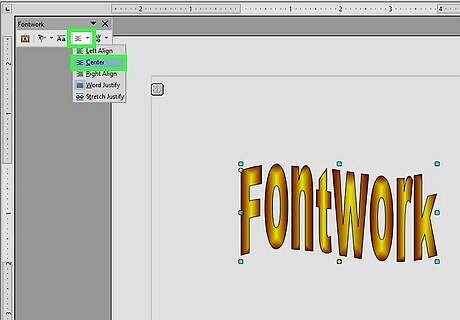 Change the Fontwork Alignment. This icon looks like multiple lines in a list and it changes the alignment of characters. Your choices are left align, center, right-align, word justify, and stretch justify. The effects of the text alignment can only be seen if the text spans over two or more lines. In the stretch justify mode, all the lines are filled completely.