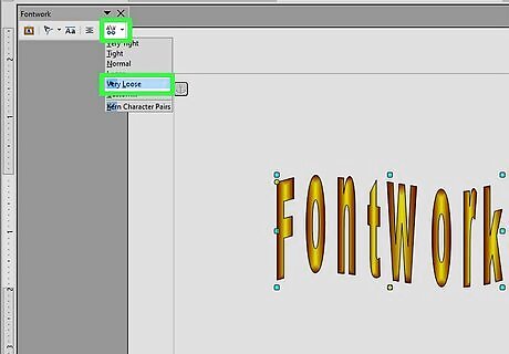 Edit the Fontwork Character Spacing. This icon looks like an "A/V" with an arrow underneath the letters and it changes the character spacing (kerning) in the object. For custom spacing, input a percentage value: 100% is normal spacing; less than 100% is tight spacing; more than 100% is expanded spacing.