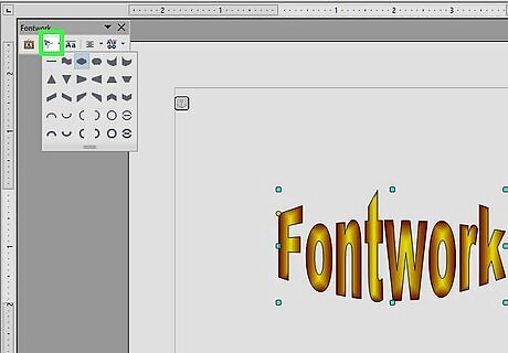 Change the Fontwork Shape. This icon looks like an "A" on a slope and it edits the shape of the selected object. When you click the Fontwork Shape icon, a menu of more shapes that you can use will drop down.