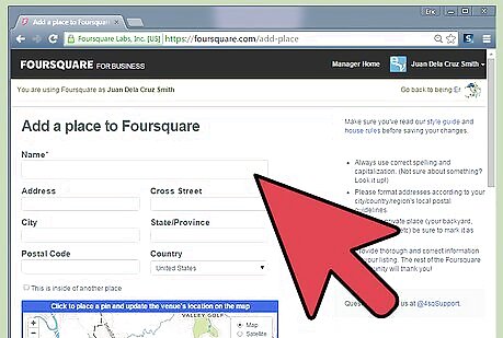 Add your business location on Foursquare. Click on the “Add a new place to Foursquare” link at the bottom left of the page to open a new location page. You can directly go to this page at https://foursquare.com/add-place. Enter the name of the business, its address, city, postal code, and country in the required fields. Now, type your business Twitter account ID and business phone number in the required fields. Click on the category box and choose a category and sub-category of your business from the drop-down list. Hit the “Save” button below to add your business location on Foursquare.