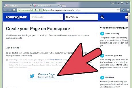 Create and launch your Foursquare business page. The Foursquare business page for publishing tips related to your business location. To create a Foursquare business page, you must connect a business Twitter account to Foursquare. Create a Foursquare Business Page at https://foursquare.com/create_page. If you’re not yet logged into your Foursquare account, you’ll be asked to log in. Do so, and then click on the “Create a page” button with the Twitter logo in the middle. Sign into your Twitter business account using your registered email address and password. After signing into your Twitter account, click “Authorize app” to connect your Twitter business account to your Foursquare business page. After that, you will be redirected to your Foursquare business page; it will have the same business name as shown on your Twitter business account. Enter your business’s mission and vision in the “Description” field in 160 characters or less. You can also edit your page’s profile picture or page name. Click the “Save” button at the bottom of your page when you are done.