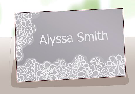 Use lace for the seating cards. If you have seating cards with people's names, embellish them with lace. Glue bits of lace to seating cards or glue a lace bow to them. This can work well if you have leftover lace. If you, for example, used lace bows for the seats at the wedding and have lace leftover, use it for the seating charts.