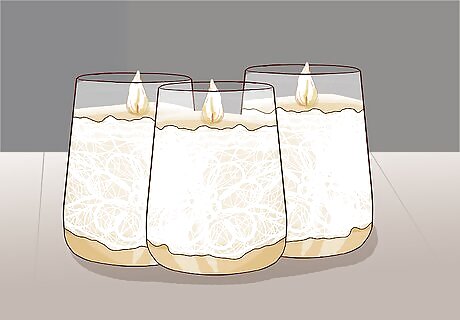 Embellish candle holders with lace. If you're using candles for decoration, try tying a lace bow around each candle holder. You can also use candleholders with a lace design. Make sure to keep any bits of lace far away from a candle flame. You want to make sure there is no fire hazard.