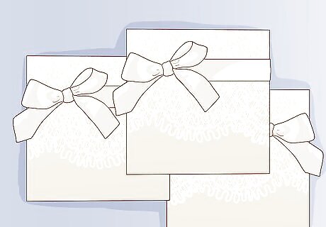 Wrap wedding invitations with lace. Start adding lace before the wedding even begins. Choose wedding invitations that are adorned with lace. A lace cover for invitations can be a fun, classy way to add lace to your wedding. If lace is a big part of your decoration scheme, lace wedding invitations can be a nice nod to this. If you don't want to wrap the entire invitation in lace, try adorning it with a lace bow.