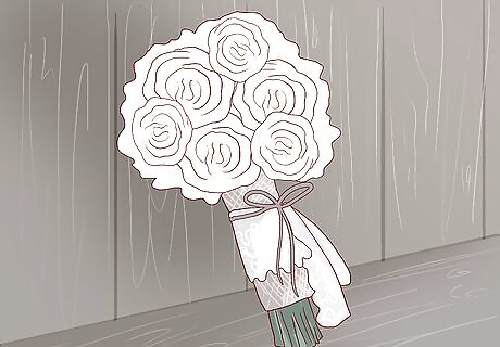 Add lace to the bouquet. If you're carrying a bouquet down the aisle, wrap the end of the bouquet in lace. This can add a touch of lace to your wedding decorations. This can pair well with something like a lace veil or lace shoes. If you want something sentimental, see if your mother or grandmother had any lace attire for their wedding day. Consider taking a snip of your mother's lace wedding dress, for example, and using this to bind the bouquet.