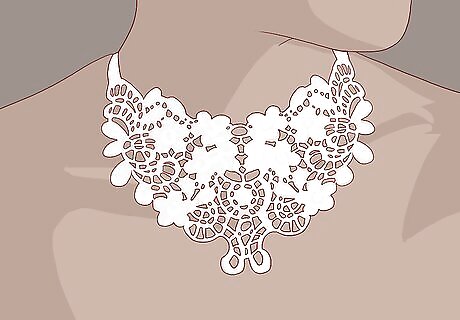 Incorporate lace jewelry. If you plan on wearing jewelry for your wedding, look into lace varieties. You can get get earrings with lace trimmings or bows. You can also get a necklace that incorporates lace. If you wear a garter, opt for a lace garter.