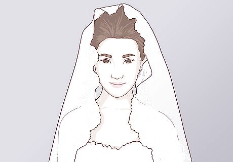 Add lace to the veil. A wedding veil that uses lace can be a great way to incorporate lace into your big day. You can have the portion of the veil that hangs over your face be made of lace. You can also add lace to the top of the veil. If you're not wearing a veil, try to add lace to whatever headpiece you're wearing. For example, opt for a lace headband.
