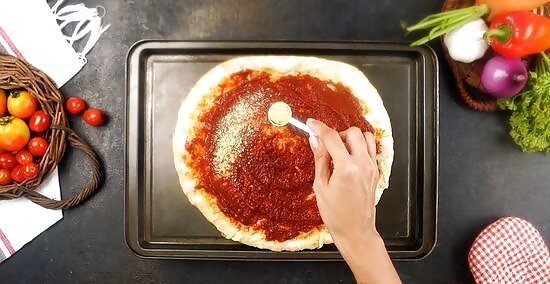 Make pizza with nutritional yeast. When preparing a store bought or homemade pizza, leave out the cheese. Instead, lightly sprinkle nutritional yeast on top of the pizza. When the pizza comes out of the oven, the yeast will have melted to a cheesy consistency.
