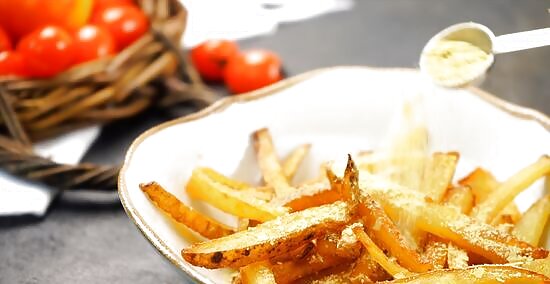 Enrich fried foods with nutritional yeast. Fried foods are notoriously unhealthy. Season foods like French fries and onion rings with nutritional yeast to add a significant amount of protein and vitamins to the dish. Nutritional yeast has a somewhat nutty flavor that goes along well with many different kinds of fatty foods, like fried foods, meats, salad dressings, and more. Fried foods should still be an “every once in awhile” food, even with the addition of nutritional yeast.