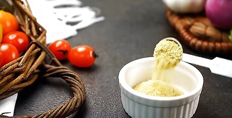 Thicken sauces and soups with nutritional yeast. Stir nutritional yeast into hot sauces and soups. As you stir in the yeast, the mixture should thicken. Continue adding yeast to the mixture until you reach the desired consistency. Savory sauces, like red sauces, and hearty soups, like clam chowder, often have flavor profiles that are suited for the nutty flavor of nutritional yeast.