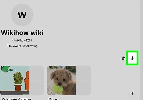 Open the search bar. If you're on a phone or tablet, tap the magnifying glass at the bottom of the screen. If you're on a computer, just click the search bar at the top of the Home page.