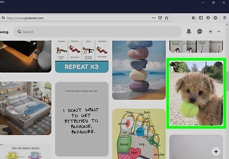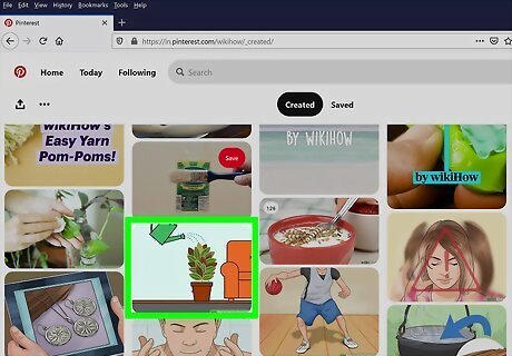 Click or tap a Pin. Think of Pins as visual bookmarks. People create Pins for things that inspire them on the internet—you'll find Pins for recipes, current events, DIY projects, art and graphics, educational aids, fashion, and just about any other topic you can think of. When you select a pin, a larger version of its image will appear, along with a brief summary and some options. If the Pin links to a website, click the web link (or tap Visit in the mobile app) to see the full content. When you find a Pin you like, you can click or tap 'Save to save it to a board. Learn more about boards in the Saving Pins to a Board method. Each Pin also contains a link to the person who created it. If you want to see more Pins from that person, tap the Follow button by their name. See the Following Boards and People method to learn more about following others.