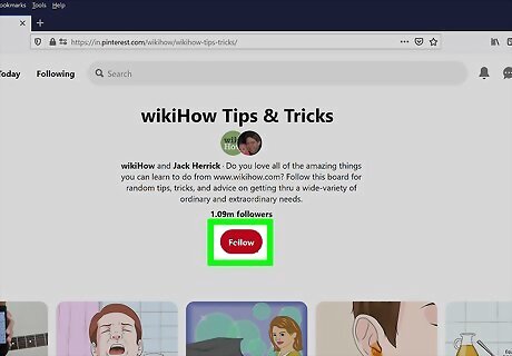 Tap or click the Follow button. This adds the person or board to your Following list. To see everything you're following, return to the Home page and select Following at the top.