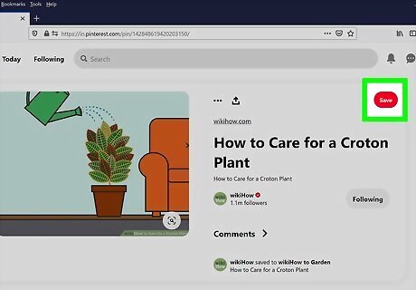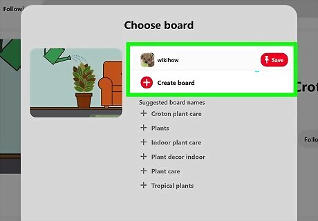 Click or tap Save on the Pin. If you've created boards in the past, you'll see a list of those boards here. If it's your first time saving a Pin (or you just want to create a new board for Pins like the one you're saving), you can create a new board.