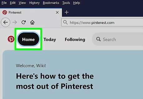 Browse the Home page. The Home page is the first thing you'll see when opening Pinterest. This is where you'll find recommended Pins based on your activity, as well as Pins from topics, people, and boards you follow. You can get back to the Home page at any time by clicking the Pinterest logo (a red circle with a white "p") on the web, or by tapping the house icon at the bottom-left corner of the mobile app. The Home page is also where you'll find some other navigation tabs—Today and Following. Click or tap Today to see daily inspiration from Pinterest, or Following to see only the content shared by people you follow.