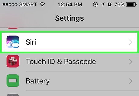 Customize your Siri preferences. You can use the following options on this page: Access When Locked or Access on Lock Screen - Slide this switch "On" (right) to allow Siri to respond to you while your phone is locked. Allow "Hey Siri" - Sliding this switch "On" (right) will prompt you to set up "Hey Siri", which is a process that allows you to say "Hey Siri" out-loud to invoke Siri. Language - Pick a language for Siri to use. Siri Voice - Pick an inflection/accent or gender for Siri's voice to use. Voice Feedback - Determine when Siri will speak aloud her responses. Choosing Always means Siri will respond to you out-loud even when your iPhone is on silent, while Control with Ring Switch lets you silence Siri with the Mute button. My Info - Select a contact to whom Siri will refer when addressing you. In most cases, you will want this to be yourself, so tap your name in the list. App Support - Control which non-Apple apps Siri can use. You can view a list of these apps by opening Siri and then tapping ? in the bottom-left corner of the screen.