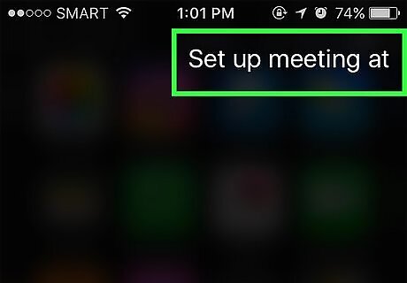 Ask Siri to set up a meeting. Simply say, "Set up meeting at noon tomorrow." It will say, "OK, I set up your meeting for tomorrow. Are you ready for me to schedule it?" This will bring up your calendar with the correct date and time. If there is another meeting scheduled then, It will let you know. Confirm with an affirmative answer or tap Confirm.