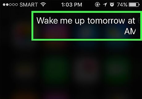 Ask Siri to set an alarm. Just say, "Wake me up tomorrow at 6 a.m." It will confirm the request by saying it set the alarm for the time you requested.