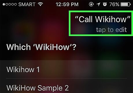 Say "Call [Name]" to make a phone call. As long as the name you say is a clear contact in your iPhone, Siri will promptly call the person in question. If you have different contacts who share a name, Siri will ask you to choose one. You can tell Siri the name, or you can tap the contact in question to make the call.