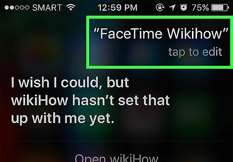Say "FaceTime [Name]" to initiate a FaceTime call. This process works the same as making a phone call; if you state a contact's name and Siri is confused, you'll be prompted to confirm the contact whom you wish to call. If the contact whom you're attempting to reach doesn't have an iPhone, the FaceTime call will briefly begin and then cut itself off.