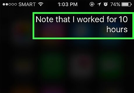 Ask Siri to write a note. Just say, "Note that I worked for ten hours today." The note with the message will pop up.