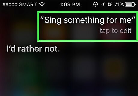 Ask Siri to tell you a joke. For a quick laugh, ask Siri to sing you a song or say "knock knock." You can also ask Siri to call you anything, such as "your highness," and ask it more about itself. iPhone users have found all sorts of fun things to ask Siri.