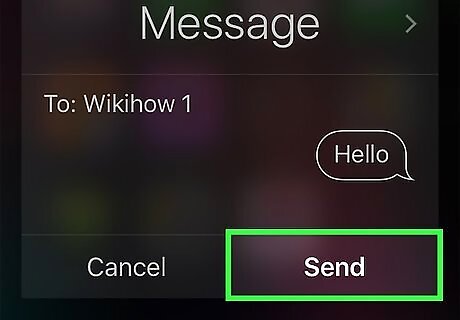 Say "Tell [Name]" followed by a text message. When doing this, make sure you say exactly what you want to send as the message after you state the contact's name. For example, to send well-wishes to a sick friend, you might say "Tell Jeff I hope you're feeling better." Siri would then formulate a message that says "I hope you're feeling better."