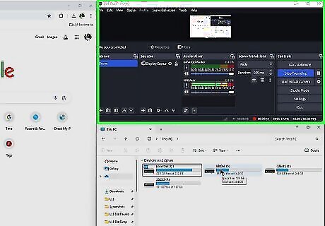 Click and drag the first window you want to move to one side of the screen. You'll want to click and drag on the title bar of the window; otherwise, the window won't move. If you drag the window to the left or right side of the screen, it will move to that side of the screen. If you drag the window to the top or bottom of the screen, it will move to either the top or the bottom of the screen. If you drag the window to one of the corners of the screen, it will move into that quadrant of the screen.