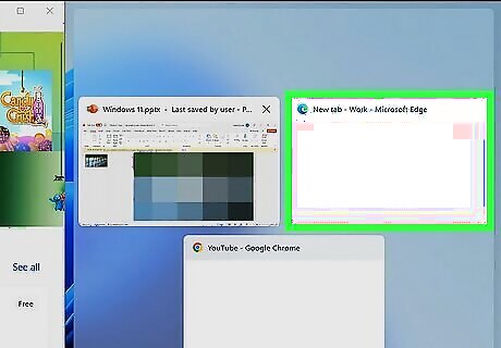 Choose the other window you want to use with split screen. Once you move one window into split screen configuration, Windows will ask which window you want to move into the other split screen spot. If you have a window open that you want to put in that spot, choose it now. If it's not, click out of the selection and open the program, then move it into the empty split screen spot.