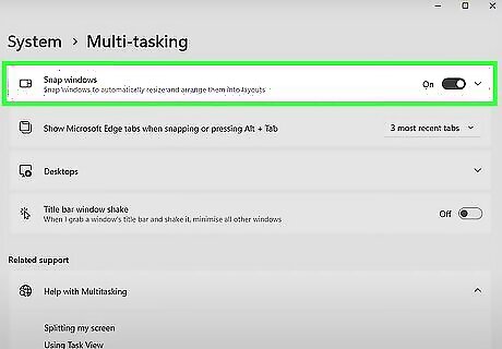 Toggle on Snap windows. If this option is already toggled on, you can exit your Settings app without changing anything.