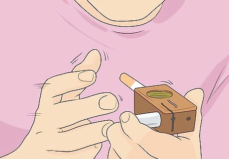 Insert the positive end of a battery into the battery hole. Remove the cap first, then insert it into the hole, positive end first. The rubber pushback ring will prevent the battery from engaging until you're ready to take a hit. Placing the rubber cap on the negative end of the battery will make engaging the battery more comfortable for your hands.