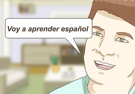 Add the word a (pronounced ah). In English, infinitives include the word to (think "to walk" or "to drive"). Spanish infinitives don't necessarily include this word, so if you want to say you are going to do something in the near future, you must include a after the verb ir. A means to in Spanish, in this case, while “a” in English can mean other things. For example, if you wanted to say "I am going to learn Spanish," you would say Voy a aprender español (boy ah ah-pren-der ess-PAN-yohl). Keep in mind that in Spanish, you simply use the present tense for continuous actions that are taking place in the present and the future. While in English you would say "I am going to the store" to indicate that you were on your way to the store, in Spanish you would simply say "Ir a la tienda" (Ear ah la tee-END-ah, literally translates as "I go to the store").