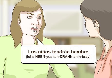 Use simple future tense to wonder or make assumptions. If you make assumptions or wonder about something in English, you typically use present tense (although you can use future tense in some circumstances), but Spanish is different. Simple future tense is most often used in Spanish to express a probability that something is happening in the present, or to speculate or guess about the present. For example, if it's close to lunch time and you're speculating that the children might be hungry, you would say "Los niños tendrán hambre" (lohs NEEN-yos ten-DRAHN ahm-bray, meaning "the children might be hungry," or literally "The children will have hunger"). Note that this sentence uses the verb tener (to have, to be), which is irregular in simple future tense. If you're unsure about something taking place in the present, and are wondering aloud about it, you also use simple future tense. For example, if you're getting ready to go out but can't find your keys, you might say "¿Dónde estarán mis llaves?" (DOHN-day ess-tay-RAHN mees YAH-vays, meaning "Where could my keys be?" or literally "Where will my keys be?")