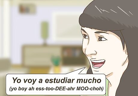 Finish your phrase with the infinitive. The infinitive expresses the action that the subject of the sentence is going to do at some point in the near future. The entire phrase is a lot like English, when you say you are going to do something. For example, if you wanted to say "I am going to study a lot" in Spanish, you would say Yo voy a estudiar mucho (yo boy ah ess-too-DEE-ahr MOO-choh). You also can add a word or phrase to indicate when the action is going to take place. For example, Yo voy a estudiar mucho mañana (yo boy ah ess-too-DEE-ahr MOO-choh mahn-YAHN-ah) – I am going to study a lot tomorrow.
