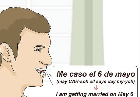 Add a word or phrase to indicate timing. Since you're using present tense, your listener or reader may assume that the action is taking place right now unless you tell them specifically when it will take place. To return to the previous example, if the classmate to whom you were speaking was someone with a different class schedule than yours, you might say "Te veo mañana en la escuela," or "I (will) see you tomorrow at school," to indicate that you will be on campus tomorrow. You also use present tense for events that are scheduled to take place, or that are certain to take place. In those instances, the event may occur further in the future. For example, you would use present tense to say "Me caso el 6 de mayo" (may CAH-soh ell says day my-yoh – "I am getting married on May 6," literal translation "I marry on May 6"), even if that date is several months into the future.