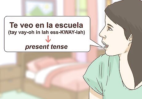 Conjugate the verb in present tense. Using present tense to indicate future actions is relatively simple. Provided you already know how to conjugate the verb, you simply make it agree with the number and gender of the subject of the sentence in present indicative tense. For example, if you say "Te veo en la escuela" (tay vay-oh en lah ess-KWAY-lah) you are literally saying "I see you at school." However, if the person to whom you're speaking is a classmate and you are talking to them over the weekend, they will understand that you mean "I will see you at school," since the two of you are not at school at the moment.