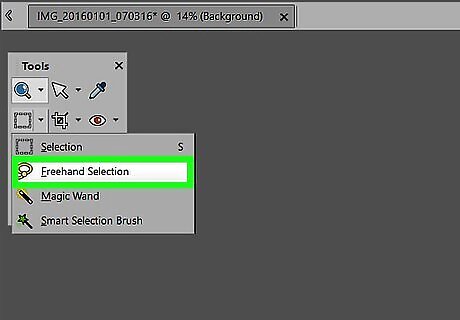 Click on the selection tool. You may see a wand, a lasso, or the 'marching ants' icon. Select the lasso. It's the 'Freehand Selection' option.