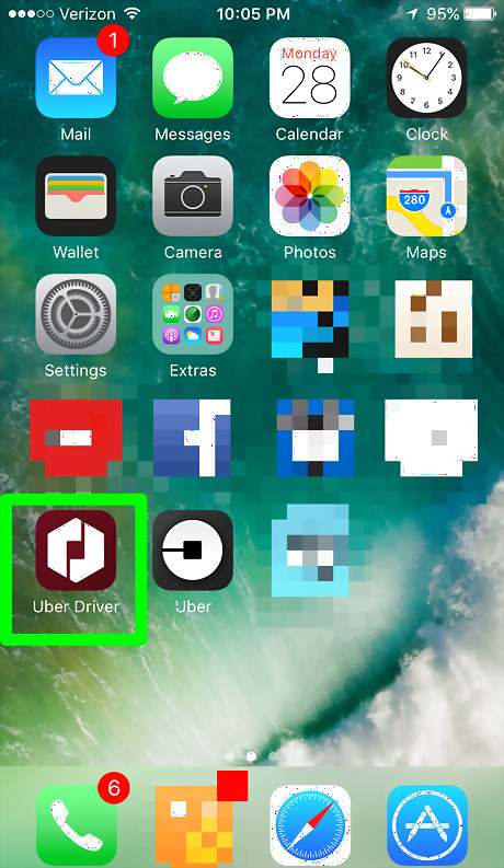 Open up the Uber Driver app. The icon has a white hexagon icon on it, with a square design cut out in the middle.