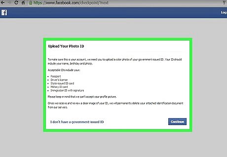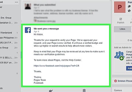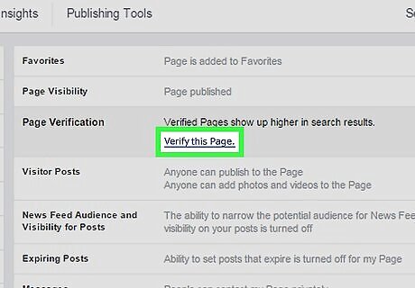 Provide identification. In order to get a page verified, it's necessary to prove your identity. You will need to scan and upload a driver's license, a birth certificate, or passport onto Facebook.