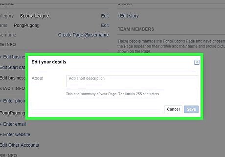 Click "settings." Once you get to your business's page, hit the tab marked "settings." This will open a drop down menu that provides you with more options. Make sure you're signed into an account that's allowed to manage the business's page. Without access to the page as an administrator, you won't be able to access it.